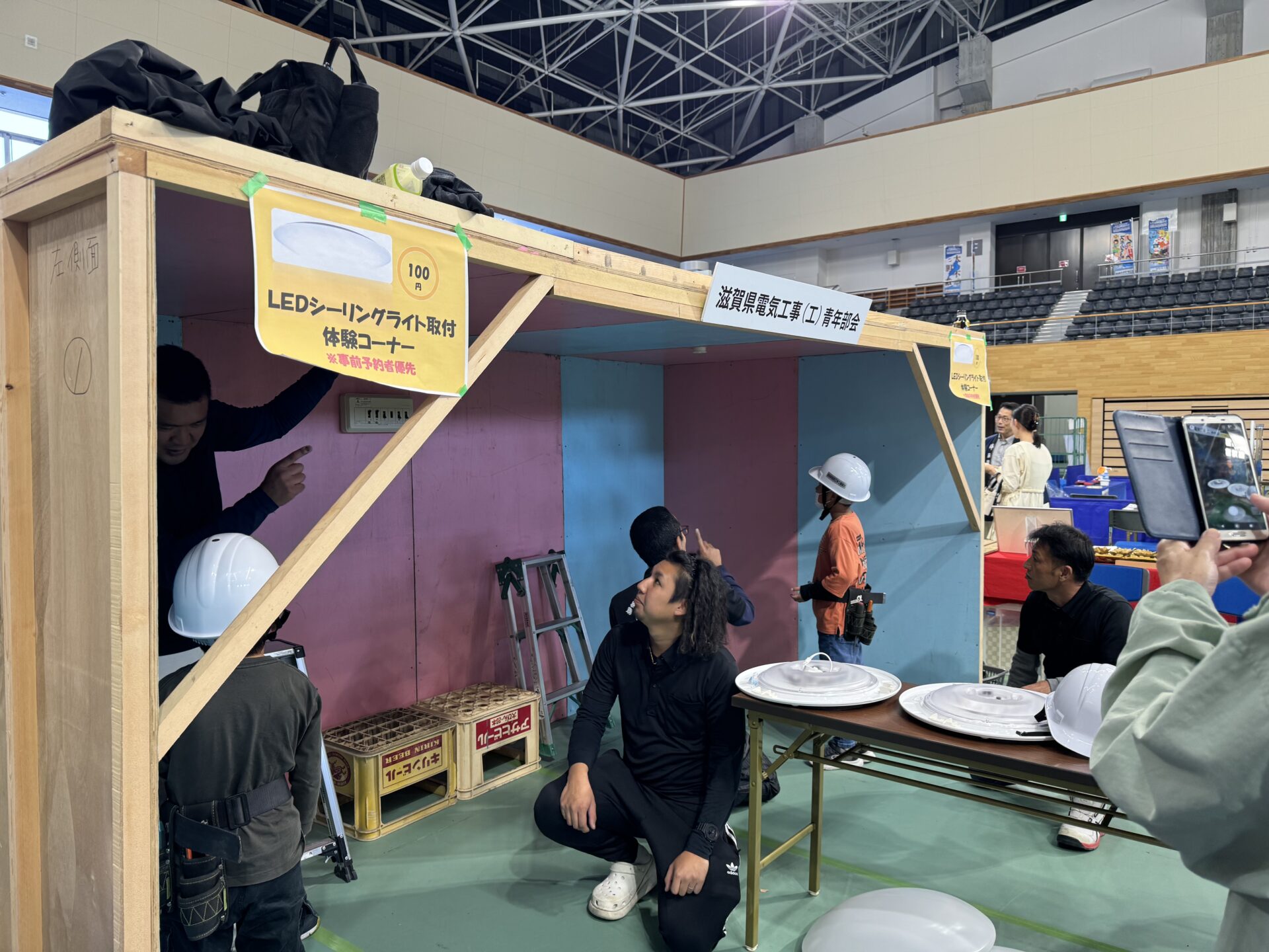 令和6年11月3日(日・祝)に草津市YMITアリーナで第2回お仕事体験・学習イベントしがわーくフェスタ2024を開催しました。このイベントでは、「わくわくするしがの仕事体験を子どもたちに」のコンセプトの下、楽しみながら県内業界・仕事に対する理解を深められる機会を提供し、勤労観・職業観の醸成を図ました。また、これからの企業経営にとって重要なキーワードとなる、SDGs、CO2ネットゼロ、DX、産学連携の考え方を実践し、各青年部及び会員企業等への波及を図るとともに、大学生との連携により効果的な情報発信を行いました。